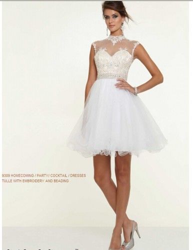 White Homecoming Embroidery Party Cocktail Prom Dresses (PD9309)