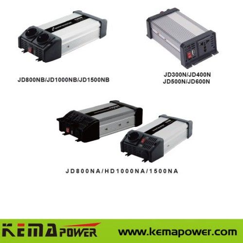 Technical Specifications | Mode | JD300N | JD400N | JD500N | JD600N | JD800NA/B | JD1000NA/B | JD1500NA/B | | Continuous power (W) | 300 | 400 | 500 | 600 | 800 | 1000 | 2000 | | Surge capability (W) | 600 | 800 | 1000 | 1200 | 1600 | 2000 | 4000 | | DC input (VDC) | 12/24 | 12/24 | 12/24 | 12/24 | 12/24 | 12/24 | 12/24 | | DC input range | 10.5V to 15.5V±0.3 or 21V to 31V±0.3 31V±0.3smn;0.3 31V±0.3 | | AC output | 220V,110V ±10 Vsmn;10 Vsmn;10 V | | Output frequency | 50/60±5 HZsmn;5 HZsmn;5 HZ | | Output waveform | Modified sine wave | | Efficiency | >85% | | Battery low alarm | 10.2-10.8V or 20.4-21.6V | | Over discharge protection | 10 ±0.5V or 20±0.5V shut offn;0.5V shut offn;0.5V shut off | | Resume voltage | 11.7V--12.8V or 23.4-25.6V auto restart | | Over voltage protection | 15V-16.5V, 30-33V shut off. | | Overload protection | Shut off while over 120% rated capacity | | With cooling fan | Yes | | USB | Yes | | DC conection | With cable | | Connection convertor | Yes | Yes | Yes | Yes | No | No | No | | Product package | Paper skin | | Running temperature | 20 to 40 degree | | High temperature protection | Yes | | Short circuit protection | Yes | | Reverse polarity protection | Yes | | Product size(mm) | 165*95*50 | 165*95*50 | 215*100*55 | 215*100*55 | 265*136*65 | 265*136*65 | 265*136*65 | | Carton size (mm) | 420*305*365 | 420*305*365 | 515*305*365 | 515*305*365 | 560*335*180 | 560*335*180 | 560*335*180 | | Carton weight (kg) | 17.5 | 18 | 22 | 23 | 11.5 | 11.5 | 13 | | PCS /CTN | 20 | 20 | 20 | 20 | 10 | 5 | 5 | | Remark | JD*NA with DC port of max 150W | | | |