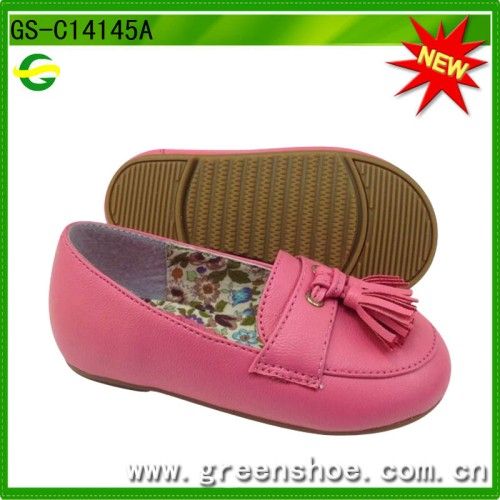 Description Hot sell new design baby girl kids shoes 1. Upper: PU 2. Lining: PU 3. Insole: PU 4. Outsole: TPR 5. Size range: 18-23# 6. Logo: As your request 7. Packing: Box, poly bag or as your request 8. OEM&ODM: Workablekablekable 9. SGS Certificate: Audited Supplier Very competitive prices with quality products, that's why you would be the winner in the market always! Greenshoe have own development department, it focus on children shoes developpment for this moment, our output new models of children shoes is 30 monthly. We can make designs base on the customer's requirement or you also can select our designs to making some changes. Competitive prices with quality products, that's greenshoe virtue in shoes business. Contact us now and you can get speacial offer always...