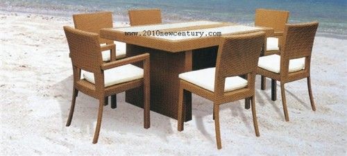 Garden Table /outdoor Table/Rattan Table and Chair set 7098 Garden Table /outdoor Table/Rattan Table and Chair set Furniture 1. Usage: Outdoor, garden, leisure 2.1.2mm Aluminum frame with high quality powder coated; Strengthened flat PE rattan; 320-360g UV resistant and waterproof polyester fabric; 8cm seat cushion within foam; 5mm tempered glass top 3. Packaging Details: Carton, kraftpaper, EPE Foam, bubble bag, PP bag, woven bag and so on 4. Quality warranty: 1-2years con contact 5. High quality, competitive price, best service Chair 55*60*85cm Table 150*90*75cm