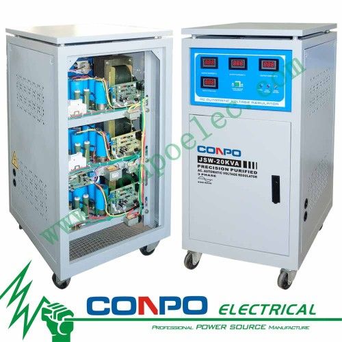 JSW-20VA 3Phase,20KVA/16KW, Vi: 300~450V/Vo: 380V+/-1%, Ferro Resonant AVR 1PC 49*53*94CM Custom-made specifications are acceptable.