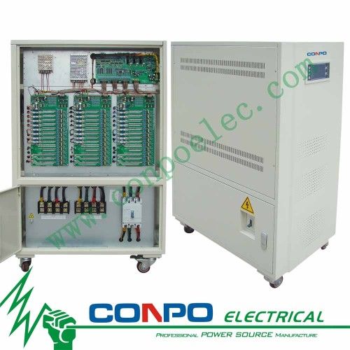 SJW-WB serial Industrial Micro-chip(CPU), Non-contact(contactless) Compensated Voltage Stabilizer which is a new generation quick stabilizing voltage equipment developed by our company through many years hard work. It adopts the newest high speed operating chip control technology, fastest AC sampling technology, efficient calibrate technology, current vanish switch and fast compensate voltage stabilizing technology. They control several available silicon slices by special sequence to control the voltage connections, then to change the main voltage and voltage polar. It composes of insulation transformer, SCR mode, CPU control core, fast voltage stabilizing technology and security equipments, and accomplishes non-contact control, safe, high efficient and energy conservation. It is the perfect match of voltage translator and SCR on/off switch.