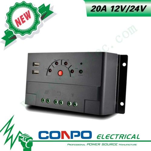 20A, 12V/24V, USB, LED, PWM Solar Controller
