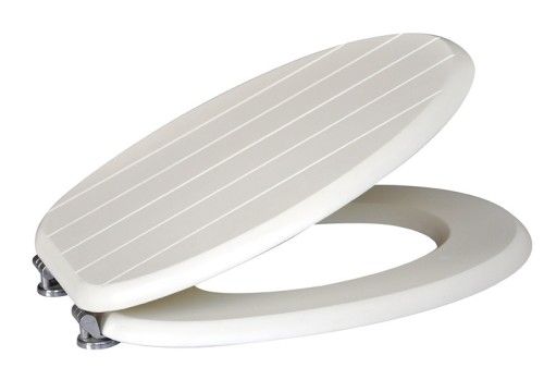 18' Moulded Wood Toielt Seatlt Seat Cover: 435*360*15MM Seat: 443*375*16MM Color: White Hinge: Zinc Alloy hinge with chromed Bumper: 2PCS round bumper on the cover 4PCS long bumper on the seat Packing: One PC shrink 4 +brown box, 4PCS in a master carton N. W: 3.875KGS