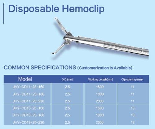 Model O.D.(mm) Work Length(mm) Clip Opening Width(mm) Endoscope Channel(mm)
