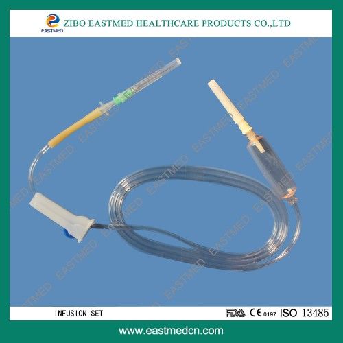 Code No.: 005 Consist of: 1. Piercing device-Made of medical grade white ABS, with or without air Inlet, 3 or 4 holes size according to ISO8536-4 standard. 2. Protective cap-Made of PP or PE. 3. Drip chamber-Made of soft PVC, size according to ISO8536-4 Standards, 4.5cm-7cm in length. 4. Fluid filter-Support is made of ABS or PE, nylon net, mesh size: 15 micron. 5. Air inlet-Cap is made of red, white, or blue PP 6. Water-repellent filter-PP support, hydrophobic filtering paper, made of Acrylic resin and nylon. 7. Flow regulator-Made of PP or ABS, normal shape, small size or Horned shape, large size. 8. Injection site-Latex cone, rubber cone, synthetic rubber cone, Y Site-made of hard transparent PVC+injection site made of natural or Synthetic rubber. 9. Soft tubing-Made of soft medical grade PVC, 3X4mm, 150cm in Length, or adjust according to requirements. 10. Terminal connector: Made of PE, PVC, luer lock or luer slip. 11. Components assembly: By gluing with solvent cyclohexanone Specification: They are suited to hard containers and soft bags( without Air inlet type) Sterile, non-toxic, pyrogen free, sterilized by EOG. Certificate: CE, ISO9002, EN46002