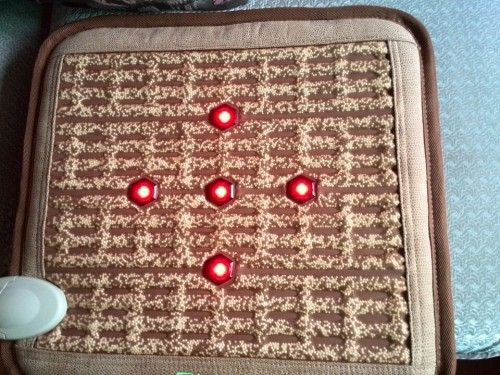 46x46 CM Photon and Tourmaline Far Infrared Anion Therapy Heating Pad 1)Far Infrared Therapy. (6 modern photon LEDs) 3)Heating Therapy. Temperature is adjustable from 30-70 degree C. 4)Tourmanium Ceramic Stones 5)Special Silicon: Special silicon is used to attach Tourmanium with the top cover to prevent harmful materials even in high temperature. 6)No electromagnetic waves: Special fiber free of corrosion and damage is used to block electromagnetic waves. 7)Aluminum foil blocks water vein 8)Silicon wire: No disconnection problem and no danger of fire.