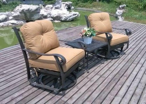 | Size | Cast End Table:L25' x W25' x H17.9't; x H17.9"" Swivel and glider Chairs:L33.46' x W29.13' x H39.37'; x H39.37"" |
