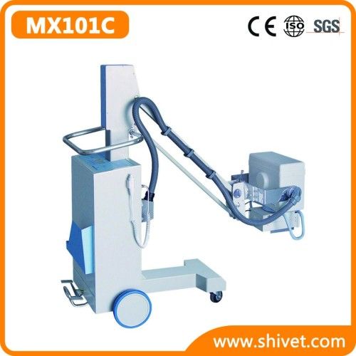 Veterinary High Frequency Mobile X-ray Machine(MX101C) Model: MX101C Features: 1. Structure designed based on anthropotomy, with beautiful appearance, and easy to operate. 2. With high frequency inverter to emit high quality X-ray and low dose on skin. 3. With techniques of KV analog closed loop control, mAs digital closed loop control and micro-processing real-time control to ensure precision and repeatability of the dose. 4. With kV, mAs two button adjustment, LCD display, multifunction of safeguard. 5. With 50 preset exposure programs, and can be modified and stored by the user for convenient operation. 6. With a high-quality knockdown X-ray generator to reduce irradiation, which is much safer to environment and operator. 7. With a symmetrical beam applicator to adjust the X-ray field and a collimator lamp to locate the filed to ensure accurate radiograph. Specifications: Power Output: 5.0KW Frequency: 40KHz X-ray Tube: Fixed anode Focus 1.5mm Tube Voltage: 40~120KV (interval 1KV) Tube Current: 40~49KV 100mA 1~180 mAs 50~59KV 77mA 1~140 mAs 60~69KV 64mA 1~125 mAs 70~79KV 55mA 1~110 mAs 80~89KV 49mA 1~100 mAs 90~99KV 44mA 1~80 mAs 100~109KV 32mA 1~63 mAs 110~120KV 25mA 1~50 mAs MAs: 1.0~180 mAs (46 steps) Power Supply: 220V± 10% 50Hz inner-resistance≤ 1.0Ωce≤ 1.0Ω.0Ωce≤ 1.0Ω Operation Method: Wire/Wireless control Packing Details: 1240mm× 900mm× 1460mmtimes; 1460mmtimes; 1460mm N. W. 150kgs G. W. 210kgs