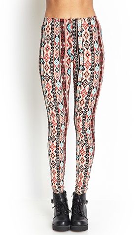 Product Name: Southwestern-Inspired Knit Leggings with Elasticized Waist