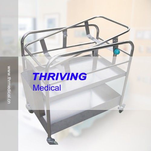 THR-RBS1 Stainless Steel reclining Bassinet trolley Material: Stainless steel SUS304 Specification: 1. Two-layer shelf; upper guard rail height: 5cm; lower guard rail height: 15cm 2. L68cm xW44cm x H87cm 3. Upper/lower shelf: 0.8mm stainless steel board 4. Foot tube: 1(25mm) x 1.2mm stainless steel circular tube 5. 4 high quality 4movable plastic wheels; dual-circuit brake Our advantages: 1. Original Manufacturer, the producing workshop is more than 40000 Square Meters 2. All parts are produced by our factory 3. Strict Material Inspection & Quality Controllingllinglling 4. ISO9001, ISO13485(SGS) Quality Management System 5. More than 10 years experience in producing and engineering 6. CE (SGS) Certificate 7. Products are exported to more than 30 countries
