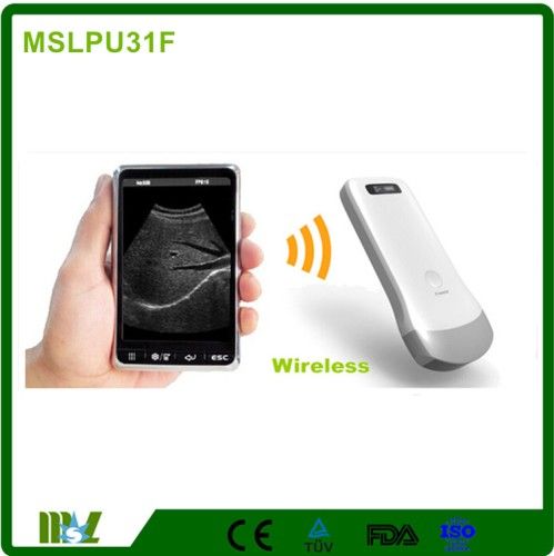 This wireless probe scanner with integrated ultrasound circuit boards inside, can wirless connect to the PC Tablet, SmartPhone that after installed ultrasound software, then realize the functions of a ultrasound scanner.