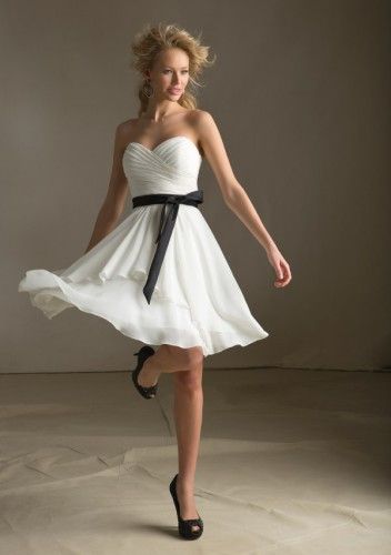 White chiffon dress with satin black sash cocktail dresses