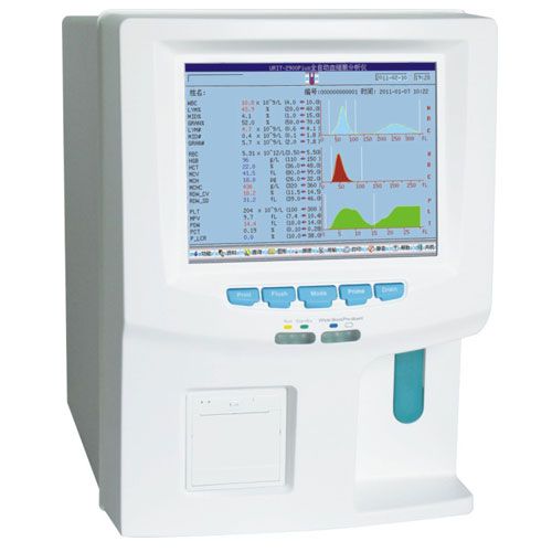 Specifications · Parameters: WBC, LY#, MID#, GRAN#, LY%, MID%, GRAN%, RBC, HGB, HCT, MCV, MCH, MCHC, RDW-CV, RDW-SD, PLT, MPV, PDW, PCT, P-LCR, 3-part differentiation of WBC, 21 parameters and 3 histogramsstogramsstograms · Principles of operation: WBC/RBC/PLT: Electrical Impedancempedancempedance HGB: Photoelectric colorimetry · Aspiration Volume: Whole blood 10uL, Pre-diluted 20uLted 20uLted 20uL · Aperture Diameter: WBC/RBC/PLT 80umPLT 80umPLT 80um · Throughput: 30 samples per hourper hourper hour · Data storage: More than 100, 000 sample results with histogramsstogramsstograms · Alarms: Error messagesmessagesmessages · Dilution Ration: Whole blood Capillary bloodry bloodry blood WBC/HGB 1: 232 1: 400 RBC/PLT 1: 40000 1: 45000 · Display: 10.4 inches color LCDolor LCDolor LCD · Control and calibration: L-J, X, X-R, X-B four control modes, manual, manual, manual · Power requirement: AC 100V --- 240V, 50/60Hz, 180WHz, 180WHz, 180W · Input/Output: Support RS232, standard network port and USB and USB and USB Shortcut keys with standard mouse and keyboard Internal 57mm thermal printer, Parallel Port and USB for external printer Characteristics: · Large color LCD display & Linux operation systemation systemation system · Support USB data backup & system upgradestem upgradestem upgrade · Excellent data managementnagementnagement · High efficient self checking system, less maintenancentenancentenance · Support LIS and HIS with HL7 protocoltrotocoltrotocolt