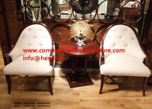 European Style Wooden Club Chair, Fabric Upholstered Accent Chair