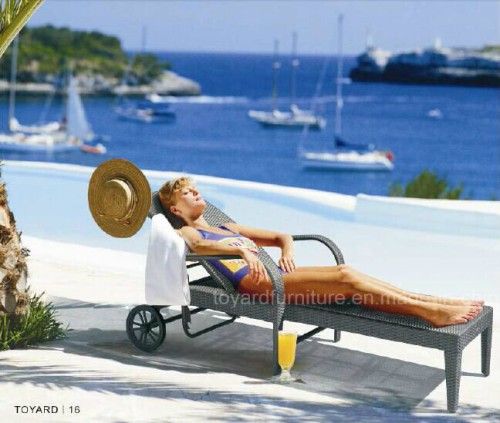 | Description: | Sun lounger with wheels, aluminum tube frame, powder coating treated, flat PE rattan woven by purehand made |