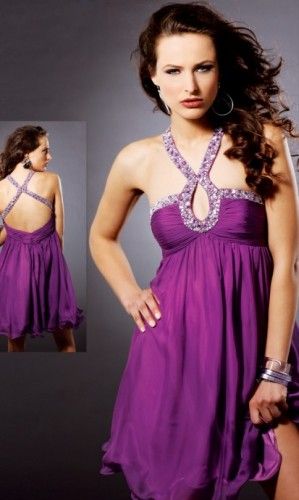 Beaded chiffon open back purple chiffon cocktail dresses