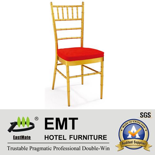 Metal Stacking Banquet Chiavari Chair for Wedding & Hotel Furniture (EMT-809-1):09-1):9-1): Material: Locust wood or Chinese Acacia WoodColor Available: Gold, Silver, Black, White, Mahogany, Natural, Brown, Fruitwood, Bronze. Cushion Color Available: White, Black, Mohogany, Gold, Silver, Red. Deep Blue, NAVI-Blue and any color. Container Loading Quantity 432 PCS / Container (20' FT) 800 PCS / Container (40' FT) 1000 PCS / Container (40' HQ) Feature: 1. Hard wood frame 2. High density foam 3. Cushion with velcro ties available. 4. Durability ensured with steel flat socket cap screw and locknut 5. Assembled OR UNassemble (Knock down) 6. Improved seat made wider for better comfort Furniture factory Introduction (EMT): FOSHAN EASTMATE FURNITURE CO., LTD (EMT HOTEL FURNITURE) is a professional hotel furniture supplier located in Foshan city of Guangdong province. We have a first-class ability in the design, production and marketing of hotel bedroom furniture and hotel public area furniture, which includes wooden furniture, wood doors, sofas, chairs, restaurant furniture, villa furniture, club furniture and mockup furniture etc. Moreover, we have a professional purchase team to work for customer to buy hotel supply and building materials including outdoor furniture, office furniture, hotel sanitary wares, hotel lights, hotel tiles, hotel beddings, hotel locks, hotel door hardware, safe, mini-bar and other hotel supply etc. With its powerful funds support, scientific management, advanced manufacturing facilities, talented designers and devoted workers, EASTMATE provided a reliable hotel supply solution for clients from domestic and overseas. Our factory covers an area of more than 218, 000 SQM, and more than 280 professional staff works here. We have showroom more than 1000 SQM established for clients and designer to evaluate our ability and choose design elements. During our 8 years of development, we have successful cooperation with big hotel brands including HILTON, HOLIDAY INN, GRAND HYATT, RAMADA, CROWNE PLAZA and so on. From which, a strict working process has been developed and strictly followed from quotation, design concept communication, workshop drawing preparation, sampling and evaluation, sample improvement, mass production, production process control and pre-shipment control. In EASTMATE, always being 'Creditable, Professional, Pragmatic, Double-Win' is our key value like bloods flows in each member of our company. Teamwork and continuous improvement has been a part of our corporation culture.ion culture. Our mission is 'Making hotel supply sourcing a piece of cake' for our clients.our clients. EASTMATE staffs will continue its efforts to provide full satisfactory business solution for our clients with hotel furniture and hotel supply products more and more innovative, vogue, environment-friendly, decent and cost-effective. You are welcome to contact us with your requests and suggestions always!
