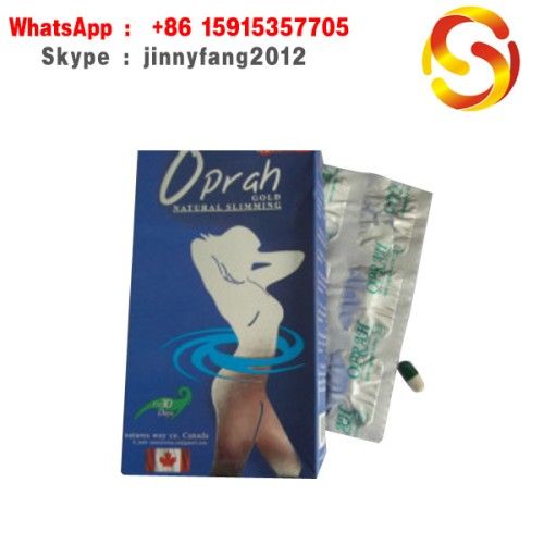 Product Description Oprah natural slimming capsule: 1. Fat Burning; Body Shaping, Detoxifying. 2. More potent, More effective, Faster weight loss. 3.30 days supply. 4. Lose 15-25 lbs monthly. With modern technology, Oprah natural slimming capsule is made of the extracts from the plants growing in Yunnan the kingdom of green vegetation, which is effective for slimming and beauty and has been used for thousands of years. It is a very special composition which contains the extracts of a group of fruits and plants derived by modern high technology and to the international GMP specifications and standards. The good, safe and special positive effects of this product in weight reduction and fat burning without any side effects has made it as the product used the most in Canada, United States, and South America. Slimming by natural plants, safe and free of side effects. No rebound, no diarrhea. Characteristics: 1. Green weight reduction especially in abdomen and buttock without any side effects. 2. Inhibit the appetite with needn't to be dieting. 3. Rapid result with be effective. 4. Fruit formula with expelling of toxin and facial beautification. 5. One capsule each day with convenient for administration. 6. Directional weight reduction with no rebounding forever. 7. Getting rid of lots of diseases caused by obesity especially heart attacks, diabetes and high cholesterol. Main Ingredients: Apple vinegar extract, the albuminolysis ferment extracted from Kiwi, artichoke, zucchini seeds, lotus leaves, garicinia plant, sweet potato cellulose, radish seeds, koncing nuts extract, konjaku extract, Japanese's sea tangle. Usage & dosage:osage:sage: 1. Take one capsule daily before breakfast by half an hour with a big glass of water, and it's preferred to take one capsule daily after breakfast for those who have any gastric problems. 2. The product should be used for three continuous months to get good results, and it's preferred to eat lots of vegetables and fruits rich with water and avoid meals rich with fat and carbohydrates during this period. 3. Practicing some simple exercises especially walking can help very effectively in burning fat and thus having a graceful active body. Specification: 350mg*30capsules each box Caution: Not applicable for women in pregnancy and patients of cardiovascular disease and apoplexy. Storage: In airproof, cool and dry condition Shelf Life: 24months Note: This product cannot replace drugs, Keep out of the reach of Children.