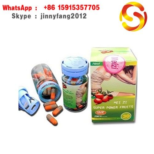 Product Description Product Description We are manufacturer of weight loss & sex products, we promise:mise:mise: 1), All the products are authentic and original. 2), Offer best price in China 3), Best service Meizi Super Power Fruits Slimming Capsules Herbal Slimming Formula Main Ingredients: Konicing nut, gamboge fruit, apple, kiwifruit, konjac extractive powder, sweet potato fiber Efficient component and content: General-flavone ﹥= 2000mg per 100g100g Function: Losing weight, face beauty Suitable Age: 16~65 Direction: 1 capsule per day, 3 boxes continuously, then stop for 1~2 months after reaching the proper weight, take 1 capsule each 2 or 3 days to keep the effect constant. Characteristics: 1.100% natural herbal slimming formula 2. Using normal fruits being taken for thousand years as raw materials and applying most advanced technology to concentrate and purify. It is very safe and no side effects 3. Eat freely and No Diet This product contains konjac extractive powder, sweet potato distill material and some other natural components, which make you feel full and do not want to eat more. You can really enjoy food and do not need to worry about gaining weight. 4. High Efficient and Feel Good Concentrating active distill material from koncing called 'super fat burning' and combining with konjac called ' fat fighter', Meizi Super Power Fruits can decompose body fat immediately, fasten fat energy's metabolizing, restrain absorbing fat after food, and make you feel lighter the first day.ighter the first day. 5. Healthy and Beauty Fruits contain a lot of fruit gel, fruit fiber, vitamin, mineral-element and microelement, which can shorten the time of the food poison staying in your stomach, expel the poison from your body, and supply nutrition at the same time. Apple acid can burn fat. Protein decompose ferment from kiwifruit can decompose meat protein to stop fat absorbing. Gamboge fruit extractive material (HCA) can stop dextrose transforming to fat and reduce energy assimilation. Therefore, this product can make you looking slim and beautiful while losing weight! 6. One capsule per day and simple process With the concentrate technology, each day you just need to take one capsule, and it is very easy for you to lose weight. 7. Slimming and Beauty in Full Directions Unique formular can help you lose weight in full directions and shape your body from legs, belly, buttocks, arm and face where easily take more fat. Cautions: 1. Do not take the capsules more than one piece per day. 2. This product is not designed for children, pregnant women, diabetics, and people with morbidly obese heart diseases