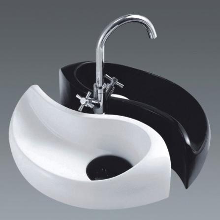 Global fashionable Sanitary Ware White and Black Modern Design Bathroom Ceramic Art Wash Basin (2009)