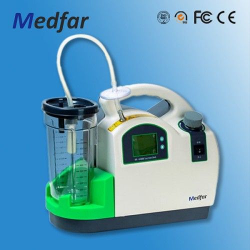MF-X-600B Portable Suction Apparatus high vacuum high flow suction unit: Specifications: *Negative pressure: ≥0.09Mpa(680mmHg)mmHg)mHg) *Air pumping efficiency: ≥20L/min/min/min *Capacity of liquid vessel: 1000ml *Range of negative pressure: 0.013MPa~0.09Mpa(680mmHg) *Power supply: AC220V±10% 50Hz10% 50Hz10% 50Hz *Input power: 400VA *Pump structure: oil-free self-lubricated pump *Noise: ≤55dB55dB55dB *Work mode: intermittent load continuous operation *This device is suitable for AC and DC power supplies can be connected to car - carried power supply *This device is able to store and supply power itself, with duration being morethan 2 hours *AC and DC power supplies can be automatically switched over without affecting normal use *The device is equipped with a imported membrane pump available with long service life *This device is available with full charge function. When the device fully charged, the charging will be automatically stopped *This device is particularly suitable for ambulance and field applications because of its small volume *This device is equipped with an overflow protection unit to prevent liquid from getting into pump body