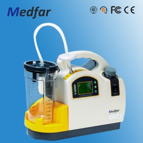 FM-X-600D Emergency Portable Suction Unit: Specifications: I. FEATURES 1. Providing extremely efficient vacuum generation with maintenance- free and easy service. 2. The level of vacuum required is controlled by the vacuum regulator and showed on the vacuum meter. 3. The overflow protection device prevents liquid or solid particles from entering the intermediate tubing and pump; the bacterial filter for single use can eliminate airborne contamination. 4. Five kinds of jar configuration make it flexible to select ,all jars available, made of polycarbonate (PC), are transparent , unbreakable and autoclavable. 5. A novel exterior, small size and light weight make it easy and comfortable to carry about. II. SPECIFICATIONS 1. Max vacuum: ≥0.09MPa (680mmHg)mHg)mHg) 2. Adjustable vacuum range: 0.02MPa~0.09MPa 3. Flow rate: ≥32 L/min/min/min 4. Noise: ≤60 dB(A)B(A)B(A) 5. Jar: 2000 mL×1(standard configuration)ration)ration) 6. Power supply: AC220V 50 Hz 7. Input power: 150VA 8. Dimension: 550mm× 264mm× 365mm× 365mm 365mm× 365mm 9. G.W./N.W.: 7/4.5kg III SELECTIVE JAR CONFIGURATION 1000ml×1times;1times;1 1000ml×2times;2times;2 2000ml×1times;1times;1 2000ml×2times;2times;2 2000ml+1000ml