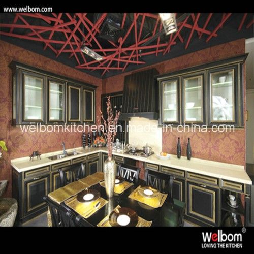 Black Solid Wood Kitchen Cabinet