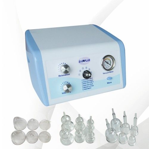 Vacuum breast massager machine! Technical Standard: Brand: Beautyplus+, Everplus Voltage: AC200-240V/50Hz AC100-120V/60Hz Watt: 70W Pressure: -90~0Kpa Wire Length: 1.8m Plug Standard: Chinese Standard (Can be changed to customer's requirement) Certification: CE Certificate Function: 1. Ncite pituitary to secret the hormone, exercise musculature of elasticity and fiber durability, make the breasts recover its spring and flexibility, make the breasts bigger and firmer, correct the breasts shape and hollow nipple. The effect of this treatment is on quickly and stably. 2. Detoxification and decontamination of lymphoid system, constringency of pore, regroup the skin, improve micro-circulation, increase elasticity of collagen, lift droopy muscle, resist wrinkle and activate skin, get rid of eye-bag, double chin as well., pull up skin., expedite blood streak, suck comedo and black spot. 3. Expedite fatty acid conversion, safely expel excessive fat, reduce weight, slim body., beautify legs, tighten skin, scrape sha, DOT points, lymphoid detoxification, improve cellulites, and develop hip and update hip form. Accessories: Breast Massage Cups: 6 pieces