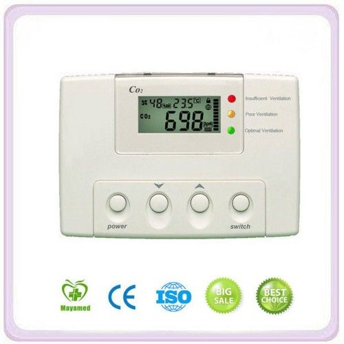 CO2 Monitor (MA 31) This MA 31 CO2 monitor is CO2 indicator and alarm. The CO2 monitor is Real-time detect and display room CO2 and temperature 1. Special design for room CO2 indicator and alarm 2. Suitable for classrooms, offices and other public places 3. Real-time detecting and display CO2 level during 0ppm to 20, 000ppm CO2 range 4. Also detecting room temperature from 5 to 65C 5. Optional real-time humidity from 5% RH to 95% RH 6. NDIR CO2 sensor technology of infrared self diffusion, 15 years lifetime 7. Self calibration algorithm makes it in using without calibration amending 8. Specially provide the altitude calibration 9. The three measured CO2 ranges for 3 LED indicator lights setup by end users 10. 3 LEDs brightness adjustable