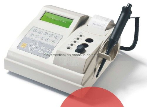 This Coagulometer is good quality Coagulometer in China Specifications: Test Method: Dispersion light nephelometric analysis Test Principle: The highest point on first order differentiation, Percentage analysis Zero point correction: Auto track the zero point, eliminate the interference of sample and reagent Wavelength: 470nm Light Source: Cold Lamp with high brightness and long lifetime Detector: Unique Dispersion light detector with high sensitivity and repeatability, immunized the effect On result of jaundice/hemolysis/chyle and turbidity on plasma Test Channel: Each channel is independent, one or more, same or different items can be tested Simultaneously Incubator: Provide reagent and sample with stable incubator, Incubator Temperature: 37± 0.2ºCn; 0.2ºCrdm;Cn; 0.2ºC Measure trigger: Auto trigger the measurement through configured pipette Item modify: Easy to add or edit items, easy to set the items parameters Calibration: Single-point calibration; Multipoint calibration; Auto store and match with calibration curve Quality control: Auto draw the quality figure Reagent: Open reagent system Reagent volume: ≤ 40μ L0μ L; L0μ L Sample volume: ≤ 40μ L0μ L; L0μ L Memory: Save more than 10000 samples results, and auto recovering the results when power is off during working. Repeatability: CV≤ 5%; 5%; 5% Calculative item: S/%/PTR/INR, Fib can be get through PT, This leads to lower the cost of reagent Printer: Inner thermal printer, can be connected to external printer Information edit: Easy to input and edit the detail information of patients Interface: RS-232 serial port, can be connected to external printer and computer Working Environment: Temperature: 10ºC~30ºC; Humidity: ≤ 70%RHty: ≤ 70%RH%RHty: ≤ 70%RH Voltage: 85-264V, Auto adapt according to the input voltage Power: ≤ 80W 80W 80W Quality System: Recognized by CE, TUV and CMD. Test Items: PT APTT TT Fib RepT VT AT-III Protein-S Protein-C LA Hep Our Advantage : 1: For all your inquires about us or our products , we will reply you in detail within 24 hours. 2: We own professional team have professional attitude to recommend products and services. 3:One year free warranty , after it is still providing after-sales service . 4: We offer OEM services , Can print your own logo on the products . 5:We have very experienced engineers , can help you better use our products .