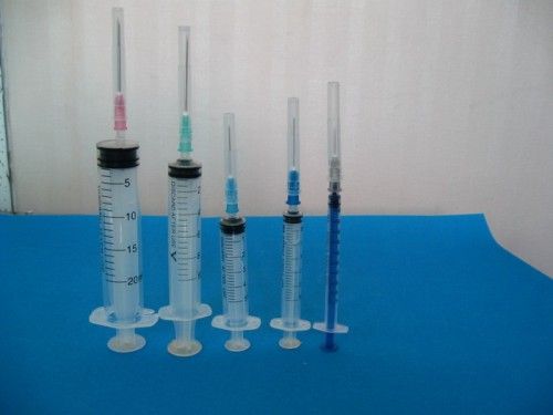 Disposable syringe for hypodermic, intramuscular and intravenous injection. 1. Sterilized by EO gas, non-toxic, non-pyrogenic, single use only. 2. Luer Slip or Luer Lock. 3. Sufficiently transparent barrel allows easy measurement of the volume contained in the syringe and detection of air bubble. 4. Graduated scale on the barrel is easy to read. Graduation is printed by indelible ink. 5. The plunger fits the inside of barrel very well to allow for free and smooth movement. 6. Material for barrel and plunger: Medical grade PP(polypropylene). 7. Material for gasket: Natural latex / Synthetic rubber(latex free). 8. With or without needle. 9. Individual pack: Blister pack / Polybag. 10. Available size: 1mL, 2mL(2.5mL), 3mL, 5mL, 10mL, 20mL, 30mL, 50mL, 60mL. 100ml 11. Standard: CE. ISO
