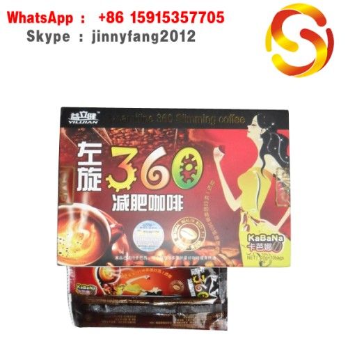 Product Description Product Description 360 Carnitine Slimming Weight Lose Coffee Product Description: L-dietary fiber, carnitine and other raw material: 1. Reducing fat with no rebound, no diarrhea, no fatigue, 2. Regulating blood lipids, 3. Improve gastrointestinal function (Defecation), detoxification, 4. Retain the appearance. This slimming and weight loss product can quickly add in the body to burn fat, in the intestinal wall to form a natural protective film, intestinal absorption of fat, promote gastrointestinal peristalsis, from the body dual effect of the toxin, so that effect is greatly enhanced at this stage most popular and effective weight loss health food products. The main materials: Brazilian Arabica coffee beans soy protein power, L-dietary fiber, carnitine, Hawthorn powder, Buckwheat powder, Konjac powder, Oyster powder and other raw material of L etc. Effects composition and content: Per 100g containing 1.1g of flavonoid, 3.4G of tea polyphenols, and 15mg of anthraquinone. We welcome all kinds of OEM and ODM orders, to meet the needs of specific design, logo, and package from customers. Great quality, Best price, and prompt delivery are definite! Fuction Reducing fat, regulating blood lipids, improving gastrointestinal function (Defecation), detoxification, Suitable and Unsuitable crowd Fitting crowd: The crowd of simple obesity has obesity trend. Unsuited crowd: Children, pregnant, and lactating women. Take method 1 time daily, one packfor each time, and half an hour before having meals. Note: This can not be a medicament substitute, please drink more water when take medicine it to promote metabolites were discharged. Storage method Dry and cool place Shelf life 24 Months