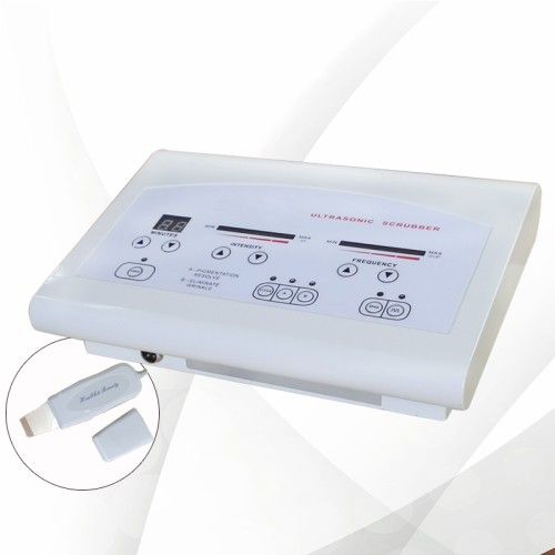 Facial care ultrasonic skin scrubber beauty machine! Function: I. Ultrasonic Deep Cleansing & Sterilizinglizingizing Ultrasonic allows fast and visible result with deep cleansing. It scrubs any impurities away from pores and not to be dry out skin. Ultrasonic can push the pH balance towards base in order to increase power of sterilization. It helps eliminate the growth of bacteria and infections. It stimulates skin without pain and the risk of high voltage burn. II. Ultrasonic Whitening 1. Re-pigmentation & whitening: Ultrasonic can penetrate serums into skin deeply in order to let skin have a better absorption to enhance and accelerate the result.sult.sult. 2. Reduces redness: Use the pulsation frequency in ultrasonic can improve and accelerate metabolisms of the capillaries in order to reduce redness. III. Ultrasonic Eliminate Wrinkle 1. Reduces appearance of scars: Ultrasonic can produce real fast pulsation frequency; Such vibration can help accelerate the disappearance of scars. 2. Moisturizes & hydrates: Ultrasonic deeply penetrates serums into skin in order to let skin have a better absorption to improve hydration of skin.skin.skin. 3. Accelerates and enhances capacity of skin absorption. Eliminate wrinkle get smooth IV. Micro massage 1. Reduces appearance of dark circles & puffiness: Ultrasonic produces fast pulsation frequency, which helps accelerate metabolism and blood circulations around the eyes. It helps to reduce appearance of dark circles and excess water, which forms puffiness underneath the eyes.eyes.eyes. 2. Ultrasonic allows fast and visible result with deep penetrations. It is easy to use and contains lots of different functions in order to suit any skin types or problems. It stimulates skin without pain and the risk of high voltage burn. 3. Relaxes & reduces pain: The warmth from ultrasonic helps to calm, relax and reduce pain.pain.pain. Accessories: Ultrasonic Scrubber-----1pc Conducting bracelet----1pc Specification: Measurement: 34.5*29.5*21.5cm G. W.: 4.5kg N. W.: 3.5kg Power: 40W