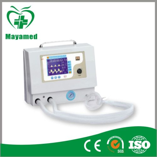 MY-E001 Portable Ventilator Machine Display mode High-definition 5.7' LCD screen displaydisplay Ventilation mode IPPV, SIPPV, SIMV, PEEP, MANUAL, SIGH Ventilation parameters Tidal volume 50~1500ml Rate 2~99bpm SIMV rate 2~20bpm I: E 2: 1~1: 8 Inspiratory trigger pressure -1.0~2.0 kPa PEEP 0~2.0 kPa Pressure range 1.0~6.0 kPa SIGH 1.5 times the inspiratory time Parameters for ventilation monitoring tidal volume, ventilation volume, IPPV rate, SIMV rate, total respiratory rate, I/E, peak pressure of airway, pressure - time waveform, flow rate - time waveform, PEEP, inspiratory trigger pressure Security Alarm System Airway pressure alarm upper limit setting range 1.0~6.0 kPa Low limit setting range 0.4~2.0 kPa Per-minute ventilation volume alarm upper limit setting range 3.0~30L/min Low limit setting range 1.0~10L/min Sustained high-pressure alarm it will give alarm when stress have consistently Been higher than 2.5 kPa Suffocation alarm it will give sound and light alarm if there is no Tidal volume input for 15 seconds Power alarm Power AC 220V± 10% 50Hz± 1Hz0Hz± 1Hzmn; 1Hz0Hz± 1Hz UPS, Storage battery Mechanical Arms Our Advantage : 1: For all your inquires about us or our products , we will reply you in detail within 24 hours. 2: We own professional team have professional attitude to recommend products and services. 3:One year free warranty , after it is still providing after-sales service . 4: We offer OEM services , Can print your own logo on the products . 5:We have very experienced engineers , can help you better use our products .