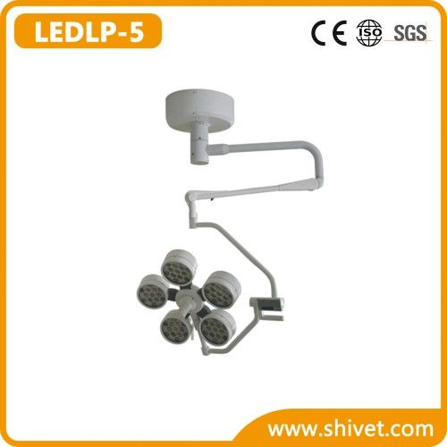 Veterinary Shadowless Operating Lamp(LEDLP-5) Model: LEDLP-5 MAIN FEATURE Excellent cold light:adopting LED as light source,without temperature rising. Excellent daylight quality and CRI meet the illumination needs of the doctors. Excellent lighting effect:unique optical system,homogenous light spot,high-definition. Brightness Adjustment:Micro computer digital control,with 8 shifts luminance for selection and it offers illuminance memory function and wide voltage working speciality. Long service life:LED life is up to 30,000 hours. Energy saving and environment-friendly. Flexible and stable balance arm suspension system contents various requirement on height and angle. STERILE CONTROL OPERATIONS the sterile control concept enables the surgical team to operate all important functions intuitively,quickly and simply. OPTIMIZED AIR FLOW DESIGN FOR BETTER HYGIENE With its open design and superior ventilated ceiling tolerance,LEDLP-5 ensures that perfect operating conditions are created and hygienic requirements are fulfilled. The airflow surface under the ventilated ceiling is minimized and the reduced heat generation ensures a low turbulence displacement stream under the light head. LONG LIFE LIGHTING LED light source life of up to 30,000 hours or more,with an average life of an ordinary light shadowless lamp halogen 30 times,and each LED can be individually replaced, to ensure maximum use of economy. TECHNICAL DATA Illuminance ≥130,000Lux0Lux0Lux Color temperature: 4800±200Ksmn;200Ksmn;200K Color reduction index: 96 Total irradiance: 480W/m2 Spot diameter: 120-240mm Illuminance depth: 1050mm lamp head diameter: 550mm Rated power of bulb: 3.2v/1w LED Service life of illuminant: 30,000h Lowest height of installation: 2900mm