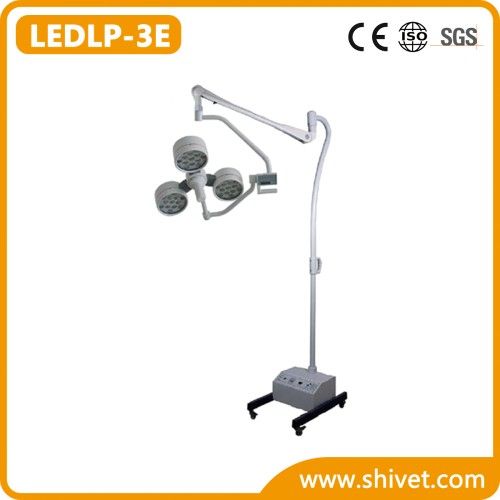 Veterinary Emergency Shadowless Operating Lamp(Mobile)(LEDLP-3E) Model: LEDLP-3E MAIN FEATURE Excellent cold light:adopting LED as light source,without temperature rising. Excellent daylight quality and CRI meet the illumination needs of the doctors. Excellent lighting effect:unique optical system,homogenous light spot,high-definition. Brightness Adjustment:Micro computer digital control,with 8 shifts luminance for selection and it offers illuminance memory function and wide voltage working speciality. Long service life:LED life is up to 30,000 hours. Energy saving and environment-friendly. Flexible and stable balance arm suspension system contents various requirement on height and angle. TECHNICAL DATA Illuminance: ≥80,000Lux0Lux0Lux Color temperature: 4800±200Ksmn;200Ksmn;200K Color reduction index: 96 Total irradiance: 310W/m2 Spot diameter: 120-240mm Illuminance depth: 1050mm lamp head diameter: 500mm Rated power of bulb: 3.2v/1w LED Service life of illuminant: 30,000h Emergency time: 3 hours Packing List Lamp head 1 Spring arm 1 Upper pole tube 1 Lower pole tube 1 Base 1 Fuse 2 Instruction 1 Certificate 1
