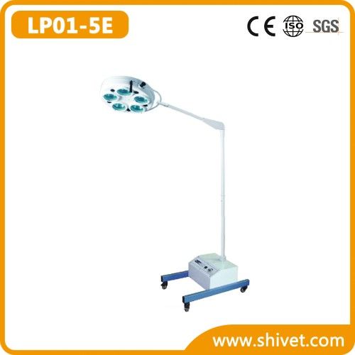 Veterinary Emergency Cold Light Operating Lamp (on stand)(LP01-5E) Model:LP01-5E Detail: LP01 Series AC/DC Emergency cold light operating lamp meets the requirements of lighting for surgical operations in special circumstances of where is no power supply. When there is power failure form electric grid or due to some other reasons , emergency power back up technical data:an last 2hours continuously to make sure that the operation can be done normally. It is fit for auxiliary lighting for medical examination on ears, nose, oral cavity,urinary system and gynaecology. Technical Data: 1.llluminance: ------------------------- ≥ 50000Lux,Lux,Lux, 2.Color temperature: ---------------- 4000±500Ksmn;500Ksmn;500K 3.power supply voltage: ------------ ~220V/50-60Hz(110V/60Hz custom-made) 4.Rated Voltage of Bulb: ------------ 24V 5.Rated Power of Bulb: ------------- 25W 6.Input Power:------------------------- 150VA 7.Spot diameter:---------------------- 500MM 8.Emergency time:------------------- 2 hours 9.Bulb:---------------------------------- Cold light source or tungsten halogen bulb