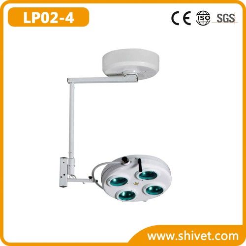 Veterinary Cold Light Operating Lamp(LP02-4) Model: LP02-4 Detail: In LP02-4 Cold Light Operating Lamp adopts light sources from different positions for focus, providing illumination for surgical operations and medical examination and reducing shadows produced by different pars of medical workers. Illumination can be adjusted according to practical requirements. The lamp is fit for lighting for surgical operations and medical examination in hospitals. Technical Data: 1. illuminance: ------------------------- ≥ 40000Lux0Lux0Lux 2. Color temperature: ----------------- 4000± 500Kmn; 500Kmn; 500K 3. Power supply voltage: -------------- ~220V/50-60Hz(110V/60Hz custom-made) 4. Rated Voltage of Bulb: ------------- 24V 5. Rated Power of Bulb: --------------- 25W 6. Input power (w): ---------------------- 120VA 7. Lowest height of installation: ----- 2900mm 8. Bulb: -------------------------------------- cold light source