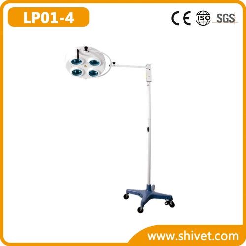 Veterinary Cold Light Operating Lamp (on stand)(LP01-4 ) Model: LP01-4 Detail: LP01-4 Cold Light Operating Lamp (on stand) Type LP01 Series standing cold light operating lamp (hereinafter called shadowless lamp for short)is intended to serve as a illuminating device for medical observation and operation in hygienic & medical units. Due to its reasonable configuration, maneuverable feature and soft light, this shadowless lamp may be used as auxiliary illumination for major operation or as sole illumination for minor operation.tion.tion. Technical Data: 1. Llluminance: ------------------------ ≥ 40000Lux,Lux,Lux, 2. Color temperature: --------------- 4000± 500Kmn; 500Kmn; 500K 3. Power supply voltage: ------------ ~220V/50-60Hz(110V/60Hz custom-made) 4. Rated Voltage of Bulb: ----------- 24V 5. Rated Power of Bulb: ------------- 25W 6. Input Power: ------------------------- 120VA 7. Spot diameter: ---------------------- 500MM 8. Bulb: ----------------------------------- cold light source