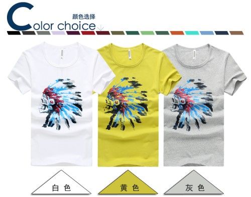 Men Summer Printed Short Sleeve Round Neck Bright Color T-Shirt (1401)