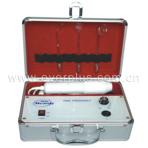 High frequency beauty machine By means of the heating action of a high frequency generator through glass ducts, skin can attain sterilizing healing effect. Equipped with 3 different types of glass ducts. Technical Standard: Brand: Beautyplus+ , Everplus Voltage: AC200-240V/50Hz AC100-120V/60Hz Watt: 120W Wire Length: 1.8m Plug Standard: Chinese Standard (Can be changed to customer's requirement) Certification: CE Certificated Function: High frequency: 1. Helps to calm the nerve and analgesia function. 2. Produce the ozone for sterilization, help wound to heal and restrain pores. 3. Improve secretion, the PH value, causes the skin lean to neutrality. 4. Accelerate blood circulation and improve metabolism. 5. Anti-aging, anti-wrinkle, tighten skin. Ultrasonic: Helps deep penetrating Accelerates metabolism Stimulates blood & lymph circulationstionstions Eliminates blemishes & bagginessinessiness Reduces cellulites, fine line & wrinklesnklesnkles Relaxes tired muscles Vacuum: The suction is helpful in cleansing of the skin. It acts much like a miniature cleaner to suction cut the deeply embedded dirt, grease and other impurities. The suction also gives a deep penetrating massage and draws blood to the surface of the skin. Refine the striper pore, acne, pustule, clean the dirt and lipids inside the pore. Spray tonics: The spray has many features when used in facial treatment .It helps achieve thorough cleansing of the skins surface. Also cool soothing and has a pleasant fragrance. The bombardment of spray is used to flush out the pores, especially after suction and squeezing of blackheads and pimples. Galvanic & Skin lifting:fting:ting: It is effective for revitalization for the skin, as it helps the active ingredients to penetrate deep into the skin .The penetration is much deeper than by manual applications. It is also to clear skin congestion and reduce surface oiliness, improve blood circulation and the normal functions of the skin. There is direct absorption of the products. It increases the efficiency of the treatment. First the skin prepared, according to skin type or individual problem, with cleansing and ozone. The specialized formulation is then applied, for the galvanic treatment. Since it clears congestion, It can benefit oily skin by removing sebaceous blockages. For dry skin and normal skins, hydrating and nourishing substances are applied.