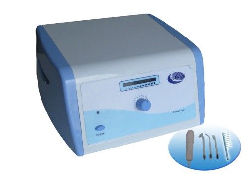 Model No B-6111 High Frequency Operations: 1. Sterilize accessories before and after each usage. 2. Switch Main Power on. 3. Switch power on. 4. Adjust intensity f according to client's skin type. 5. Turn intensity to minimum(click sound)when finish using or Exchanging electrodes. When exchange glass electrodes, please be careful that the glue on the electrode is hot. Please twist slowly when pulling out the electrode in order to keep the glue in place. If pull the electrode out, please be gentle in case the glass will break. Methods of Performing High Frequency Germicidal Effect (Direct Method Only) Direct Method of High Frequency 1. Use the 'mushroom' glass rod.; glass rod. 2. Limits sebaceous secretion. 3. Germicidal, anti-bacterial effect. 4. Drying and healing infection. 5. With client relaxed (no jewelry on) the operator turns on machine. 6. Operator places one hand on the client's face and applies the electrode to the face. 7. The electrode is rotated directly on the face in small circles, Do not lift electrode. 8. The operator places hand on client's and removes electrode. Stimulation of Surface Tissue Sparking Method of High Frequency 1. Use the 'mushroom' glass rod. glass rod. 2. Penetrates to subcutaneous tissue (adipose face). 3. Generates heat that increases flow of blood tissue fluids. 4, Improves nutrition and elimination of skin. 5, Improves skin texture, oil and moisture balance to skin. 6, Operator sets up the same as in Direct Method procedure but electrode is lifted slightly away from the skin to create a sparking Relaxation effect on Body Indirect Method of High Frequency 1, Generates warmth within tissues, produces sedative effect. 2, Increases relaxation and relief from tension. 3, Does not affect muscles. 4, Client holds 'straight' glass electrode in both hands (no jewelry on).ewelry on). 5, Operator places one hand on clients face. 6, To find out the right intensity, operator slowly turns on and up the intensity of the machine at the same time lightly massaging the face and asking the client if they feel a warm or prickly sensation to the skin. 7, When the client feels the warm or tingling sensation, the intensity is at its best for that client. 8, Massage the face with both hands now with light strokes. Do not lift the fingers from the face. 9, Massage for five minutes and then rest for two minutes; Then start again. 10, Turn off machine with one hand. Cautions: 1. Client has to take off all jewelry before treatment. 2. When use high frequency for the first time or it has not been used for a long while, it may seem not working. However, it is a normal reaction. Just turn the high frequency on for a while, and it will be working again. 3. When using sparkling effect on high frequency, use wet cotton slices to cover eyes. Only touch where it needs to be sterilized, maximum time of 10 seconds. Client will feel tingling.