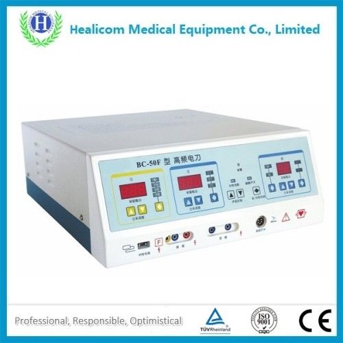 It has the features including: pure cutting, blend 1, blend 2, blend 3, monopolar contact coagulation, monopolar standard coagulation , monopolar spray coagulation, bipolar standard coagulation, bipolar accurate coagulation and so on. Monopolar electrode can be hand or foot-controlled, while bipolar electrode can be automatic and foot controlled. The system can automatic switch between monopolar and bipolar. The output power can be digital displayed. Output sound level can be adjusted. The malfunction can be self-diagnosed by the system, and error code will be displayed, with visual and audio alarm. The system has NE CONTINUITY MONITOR, intended for connection to an NE (single plates),providing an alarm in the event of electrical discontinuity in the NE cable or its connections. As well as Neutral electrode contact quality monitor (CQM), intended for connection to a MONITORING NE (split plates) providing an alarm in the event that NE contact with the PATIENT becomes insufficient. This system can be used together with the endoscope, to perform endoscopic surgery.
