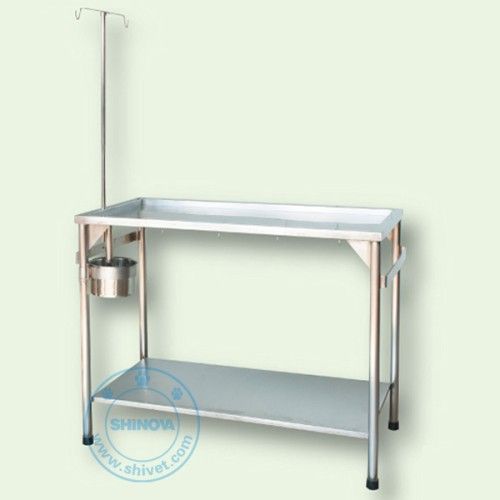 Treatment table with food grade 304 stainless steel precision manufacturing, a binding hook, sewage outfall, bottle bar, reasonable structure, high strength easy to use, easy to disinfect, clean sanitation.
