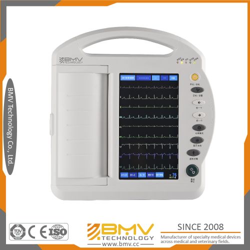 800x480 graphic 10 inch color touch LCD to simultaneously display ECG information 250 patient cases storage ( SD card storage is optional )