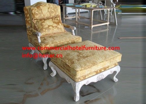 Comfortable Beige Chair & Ottoman Sets, Hand Craved in White FinishFinishinish Specifications: Featuring a tufted back design and complemented by solid wood legs finished in white, this Wing Chair has stunning looks. You'll love the comfortable beige fabric and cushioned seat. Upholstery Materials: 100-percent polyester Materials: Wood, fabric, foam, Finish: White Upholstery color: Beige Applications: Payment Terms: T/T, 30% deposit with balance being paid before shipment after inspection. FOB Delivery Leadtime: 30-60 days after receipt of deposit and approval of shop drawings, color samples and mock-up samples.