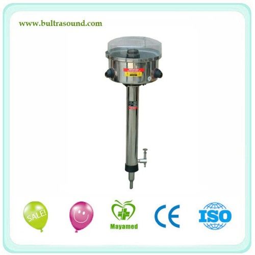 Wall Mounted Water Distillation Electric (MA3.5_4.5) This WALL MOUNTED WATER DISTILLATION ELECTRIC can be mounted on wall, and producing the distil water in lower cost, continuously, automatically and effectively. Operation: The tap water enters the bottom of the condense pipe and circle along with the pipe and enters the vaporize pan in the end, the height of the overflow be pre-set. The steam in the pipe go down and meat the water go up, thus to make the gas in it. The steam produced in vaporize pan reached the condense pipe through guide plate. The guide plate be installed as can change direction three times before the steam enters the condense pipe. This way can protection of bring tap water in the distil water, the tap water bring in the distil water is the main cause of chemical of distil water worse. If the working is normal, it can get the water of fyrogen-free. The vaporize, condense, overflow and guide plate inner are made in stainless steel. And the cover outside and the cover of guide plate are made in heat-resistant borosilicate glass, all the electric elements with safety cut off switch.