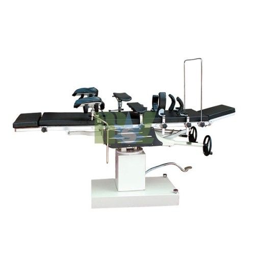 This table are compactly designed and sturdily constructed, and may be raised or lowered hydraulically by means of an oil pump. They are suitable for surgical procedures of the head, neck, thorax, abdomen, perineum and extremities as well as for gynaecological, obstetrical, urological and oto-rhino-laryngological operations. Various positions can be quickly and safely adjusted.