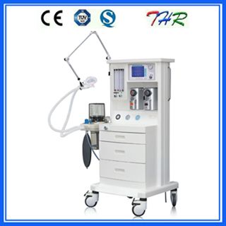 THR-MJ-560B4 Anesthesia Machine THR-MJ-560B4 based on ergonomics of the design, structure concise and fluent, mobile, lightweight comfortable. Microcomputer control of the ventilator imported sensors and components, and production processes to ensure that rigorous internal quality products, folding bellows breathing mechanical ventilation system so that security situation, intuitive. High-precision anesthesia evaporators to ensure that the concentration of anesthesia output accuracy. Power transmission and gas metering system to ensure the safe and reliable gas supply. The aircraft brought together a number of modern technologies, is a fine performance, functionally complete anesthesia machine. This machine uses in respiratory control, respiratory intensive care, 5.7-inch high clear display, pressure time wave and Velocity-time wave to monitor respiratory condition Multi-directionally; The high-precision evaporator has the stable output concentration with pressure, temperature, and flow automatic compensation; Choose one among Enflurane, isoflurane and sevoflurane for a matching; Main technical parameters Part of Anesthesia Machine Console High-strength engineering plastic rack, light, beautiful and corrosion resistance Scope Adult, Child Gas source oxygennitrous oxide: 0.3~0.5MPa Flow meter oxygen: 0.1~10L/min 1.1~10L/min nitrous oxide: 0.1~10L/min 1.1~10L/min Oxygennitrous oxide linkage and nitrous oxide Truncation device When use nitrous oxide, oxygen concentration﹥25%; When the oxygen pressure<0.2Kpa, the flow of nitrous oxide would be cut off.ut off. Rapid oxygen flow 35~75L/min Vaporizer It has the function of pressure, temperature, and flow automatic compensation. The regulation range of evaporator concentration is 0~5vol%. Choose two among enflurane, isoflurane and sevoflurane for a matching according to the demands of customer. Low oxygen pressure alarm It will be alarmed when the oxygen pressure < 0.2MPa.2MPa Respiratory circuit Work mode all close. Semi-close. Semi-open Pressure release 0.5~7KPa Bellows breathing Adults and child bellows Tidal volume range: 0~1500ml child bellows Tidal volume range: 0~300ml Adultschildren bellowschildren loop are arbitrary choice for users. Part of Ventilator Display mode 5.7-inch high clear display, Ventilation mode IPPV SIPPV SIMV PEEP MANU SIGH Ventilation parameters Tidal volume 50~1500ml Frequency 4~60/min breath /expiratory ratio 2: 1~1: 8 Trigger sensitivity -1.0~-0.1Kpa PEEP 0~1.0Kpa Pressure Control 1~6Kpa SIGH 1.5 breath times Ventilation monitoring parameters tidal volume. Ventilation. IPPV ratio. Breath /expiratory ratio. Peak pressure. Pressure time wave. Velocity-time wave. Total respiratory rate. Airway pressure wave. PEEP. Breath pressure trigger. Monitoring oxygen concentration 21%~100%(choose and match) Security Alert System Oxygen Concentration alarm upper limit setting range 50%~100% (choose and match) low limit setting range 15%~50% Airway pressure alarm upper limit setting range 1~6Kpa low limit setting range 0.4~2Kpa Alarm minute ventilation upper limit setting range 3.0~30L/min low limit setting range 1~10L/min Asphyxia alarm The machine will give sound and light alarm if there is no tidal volume input in 15s Power failure alarm Power AC 220V± 10% 50Hz± 1Hz UPS. Battery. (choose and match)oose and match)oose and match) Manipulators (choose and match)